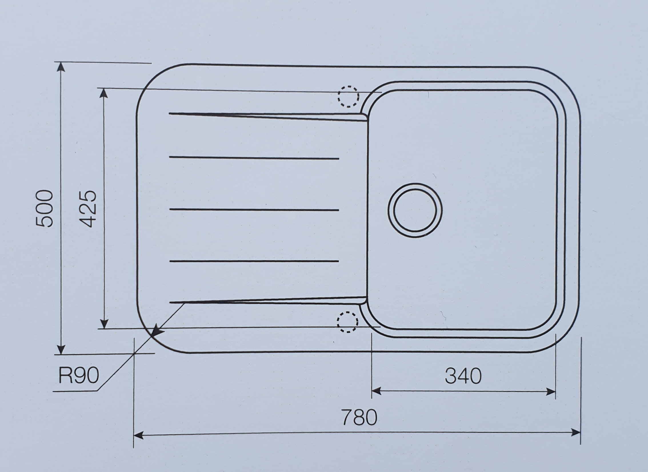 Ширина мойки: